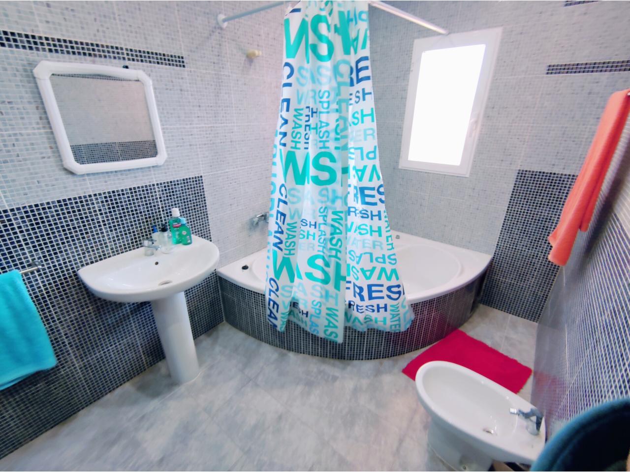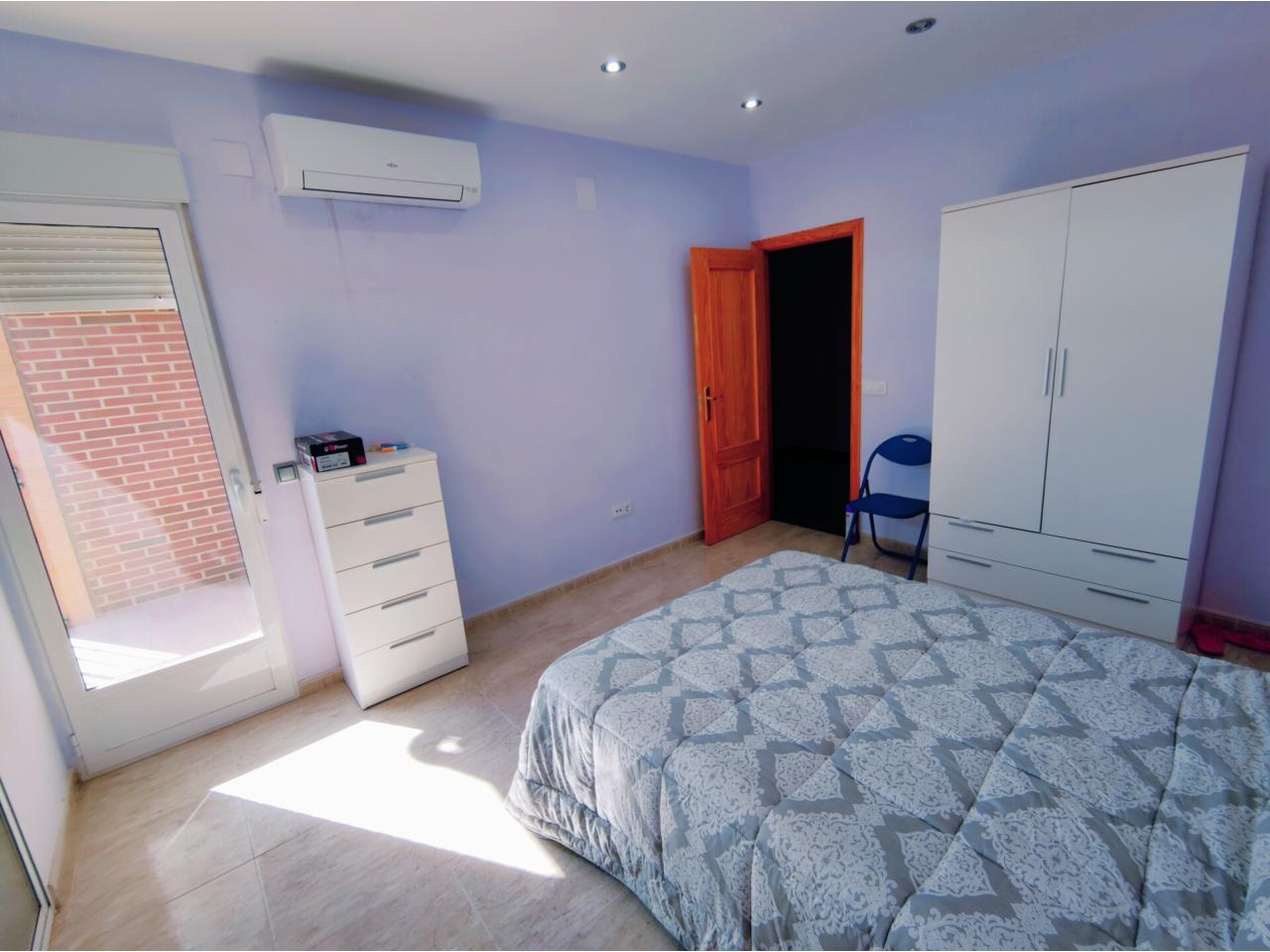 Preciosa casa en Barrio de San Juan, distribuida en tres plantas, la planta baja se compone de garaje de 73 m2 con capacidad para varios vehiculos y cuenta con baño completo, en primera planta se distribuye en comedor muy amplio y luminoso, cocina independiente, dormitorio doble con armario empotrado, baño completo y patio, en segunda planta dispone de tres amplios dormitorios uno de ellos transformado en vestidor, baño completo con bañera de hidromasaje, la vivienda cuenta con muy buenas calidades, suelos en gres, carpinteria interior en pino, aire acondicionado en toda la vivienda mediante splits, carpinteria exterior en aluminio con doble acristalamiento, armarios empotrados, cocina amueblada, puerta de entrada en madera maciza, ubicada a escasos metros de parques y colegios.